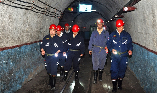 9:10,张总经理深入该矿2306综放工作面生产现场检查,在采煤工作面上端头,与干部职工进行了亲切的交流。对工区自行设计研制的防跑车装置给予了肯定。在2306下顺槽皮带漏煤眼处,现场管理人员向集团公司领导介绍了矿上自行设计、改装使用的煤矸分运装置,该装置对提高采煤效率和提高煤质起到了重要的作用,通过演示使用,张总经理对矿上的小改小革给予了很高的评价。升井后,又与班子成员进行了座谈。