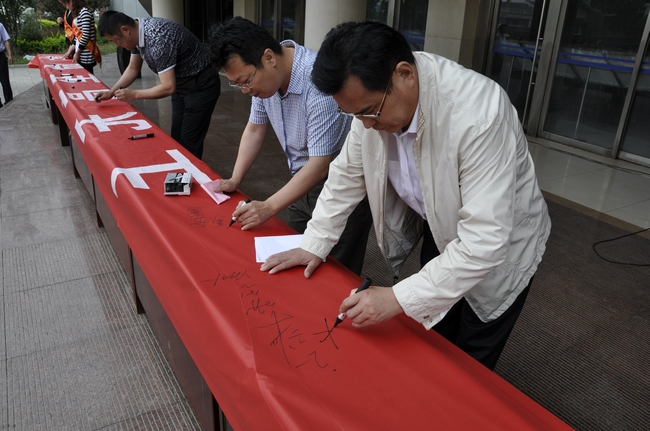随后,吴德金带领300多名教工指代高举右拳,通过肃穆授旗:“方便钟爱生命值,方便人家我的幸福,方便客户提升……”承诺铿锵强有力的,掷地有声版,一声声入耳,字字深入人心。宣誓完毕后,干部职工们在“生命至高无上,安全责任为天”的安全横幅上签下了自己的名字和安全寄语。