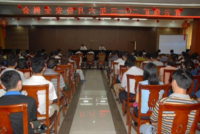 会议由副矿长王旭东主持。与会人员首先观看了事故警示教育片《伤逝—离别之哀》,根据会议议程,丁佰华副矿长传达了上级安全指示精神,带领大家回顾了矿井5月份安全生产情况;分析了工作中存在的问题与不足,并就6月份安全工作重点进行了安排部署并提出了具体要求:一是精心组织,周密部署,扎实深入开展好“安全生产月”活动;二是以采面设备安、撤期间的管理为重点,全面抓好矿井机电提运安全管理;三是以1307工作面老顶来压及1302-1工作面切眼剥帮期间的管理为重点,深入排查治理矿井顶板安全隐患;四是加强“一通三防”安全管理,提升通防安全水平;五是加强火药放炮安全管理,严防各类放炮事故发生;六是认真做好雨季“三防”工作,确保矿井安全度汛。