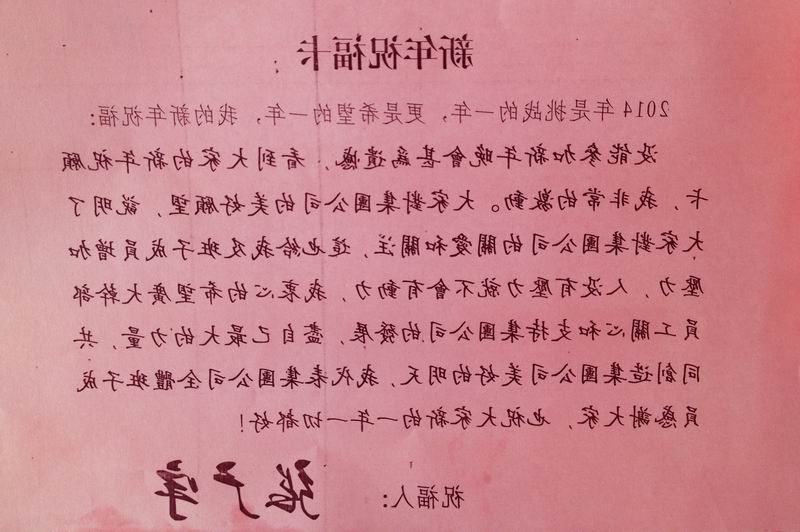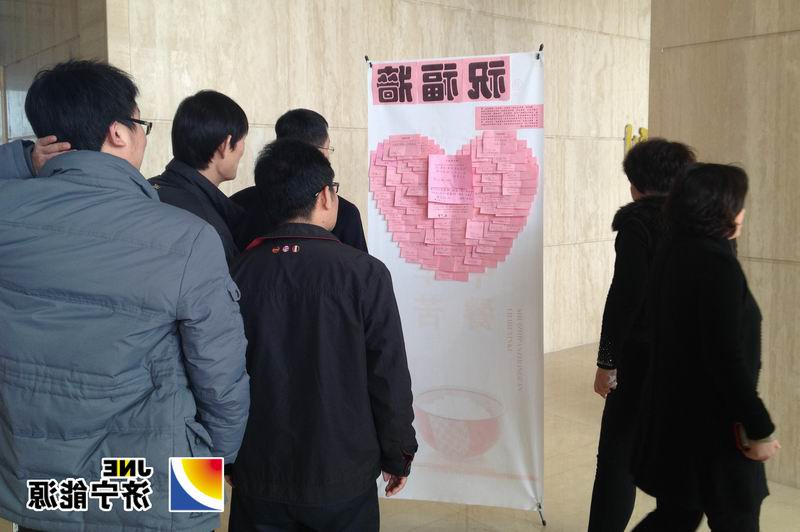 集团公司员工驻足观看置于一楼大厅的祝福墙